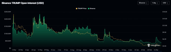 Chart of open interest for TRUMP contracts on Binance. Source: Coinglass