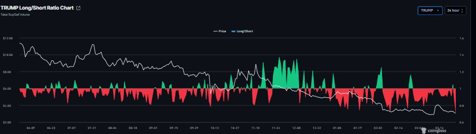Chart of the long-to-short ratio for TRUMP. Source: Coinglass