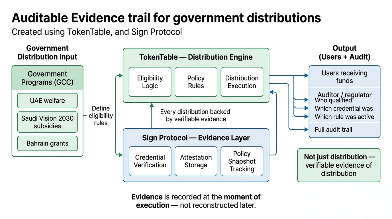 Sign Protocol's docs place TokenTable inside the S.I.G.N. capital system precisely for this reason. TokenTable handles the distribution logic. Sign Protocol handles the evidence layer underneath it. The division means that every distribution carries an auditable evidence trail that is structured, queryable, and inspection-ready — not reconstructed manually after the fact.