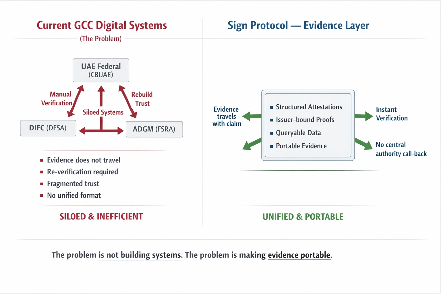 Sign Protocol stopped sounding like a project reaching for government credibility. It started sounding like a verification layer that the Middle East's regulatory architecture is already structurally asking for — quietly, in the language of evidence retention and cross-jurisdictional credential portability, not in the language of blockchain announcements.
