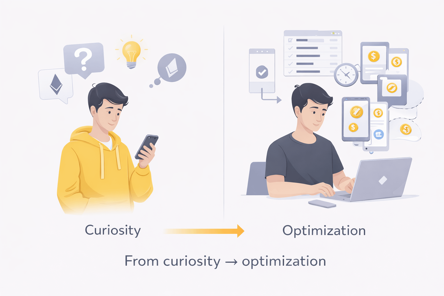 A few months later, the same person is running multiple wallets, tracking eligibility, and timing interactions. Not because they changed, but because the system quietly taught them how to behave.