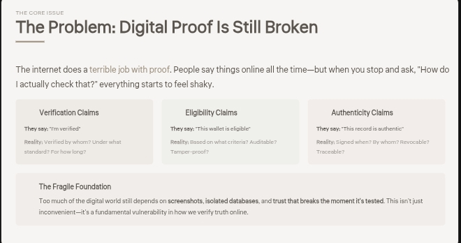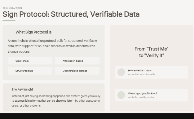 What pulled me in first was the simple fact that the internet still does a terrible job with proof. People say things online all the time. They say they are verified. They say a wallet is eligible. They say a certificate is valid. They say a contract was signed or a record is authentic. But once you stop and ask, “How do I actually check that?” everything starts to feel shaky. Too much of the digital world still depends on screenshots, isolated databases, and trust that breaks the moment it is tested. That is the space where Sign starts to make sense. Its official docs describe Sign Protocol as an omni-chain attestation protocol built for structured, verifiable data, with support for on-chain records as well as decentralized storage options.