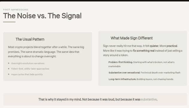 I have read about a lot of crypto projects, and honestly, most of them start blending into each other after a while. The same big promises. The same dramatic language. The same idea that everything is about to change overnight. But Sign never really hit me that way. It felt quieter than that. More practical. More like it was trying to fix something real instead of just selling a story around a token. And I think that is why it stayed in my mind.