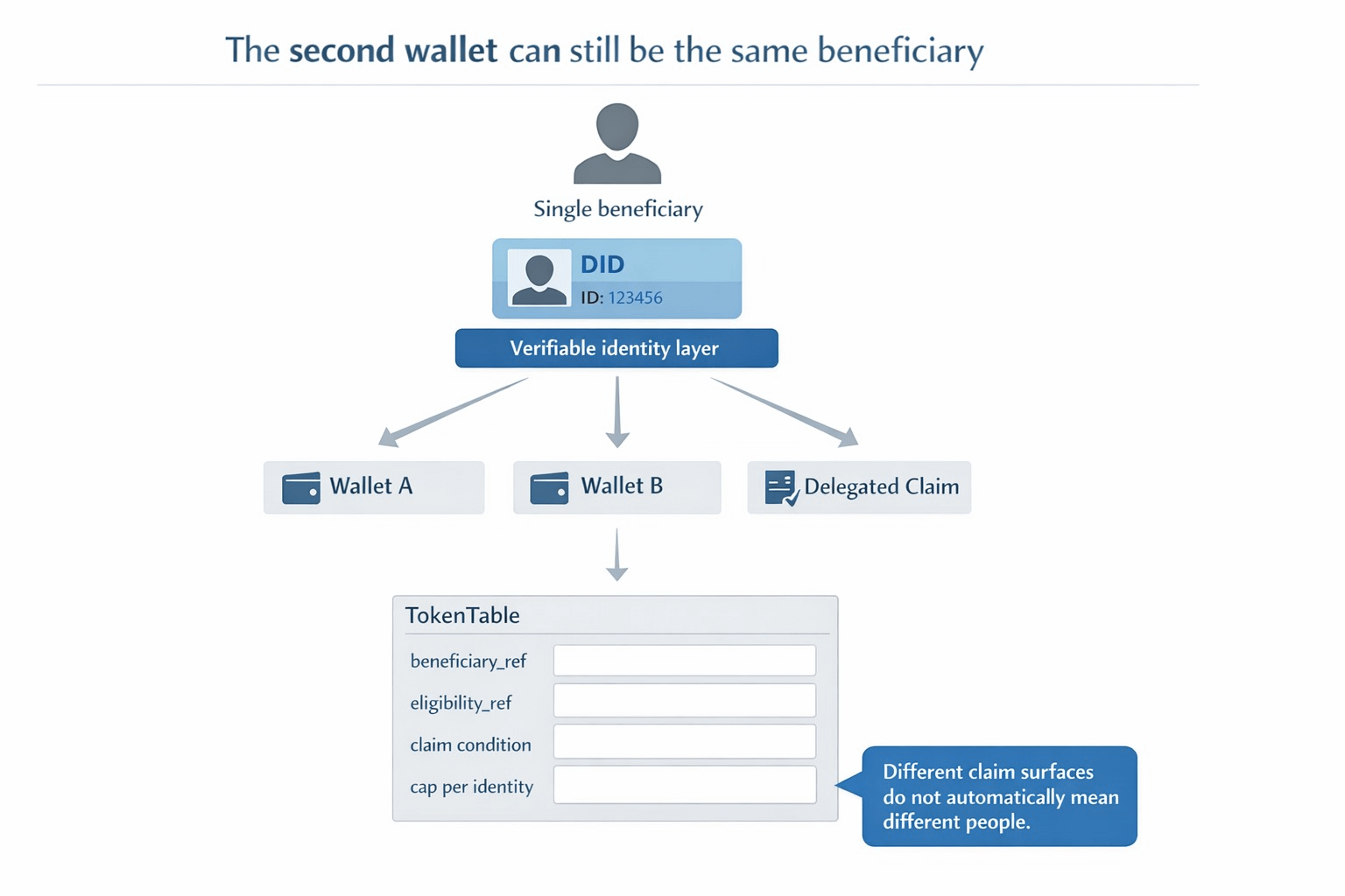 I think that matters more than most distribution teams admit. A lot of programs do not really fail on the happy path. They fail in the overlap between wallet churn, duplicate applications, delegated execution, and partial records across different systems. The second claim is where weak systems suddenly reveal that their idea of identity was never stable enough for money in the first place. SIGN feels sharper here because Sign Protocol is not just storing another proof object. It is acting as the evidence layer for eligibility, allocation, execution, and later audit, while TokenTable keeps the distribution rules deterministic instead of discretionary.