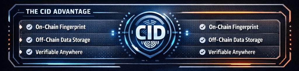 The CID (Content Identifier) is the trick. Fingerprint on-chain. Actual data somewhere smarter.