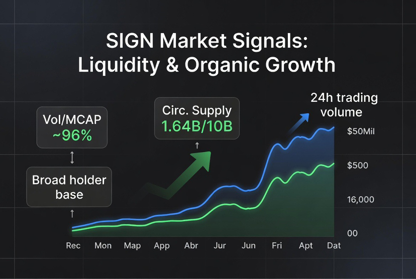 Market signals indicate that $SIGN is not merely speculative, as shown by its market cap of approximately $52 million and a circulating supply of 1.64 billion out of a maximum of 10 billion. The token boasts exceptional liquidity, with daily trading volumes exceeding $40 million, resulting in a volume-to-market-cap ratio near 90%. This volume represents significant capital movement on major exchanges like Binance and Upbit. The distribution among holders is healthy, with over 16,000 unique addresses, reflecting organic growth. Price movements are driven by steady accumulation congruent with protocol usage and partnerships, demonstrating that SIGN’s demand arises from utility rather than market hype.