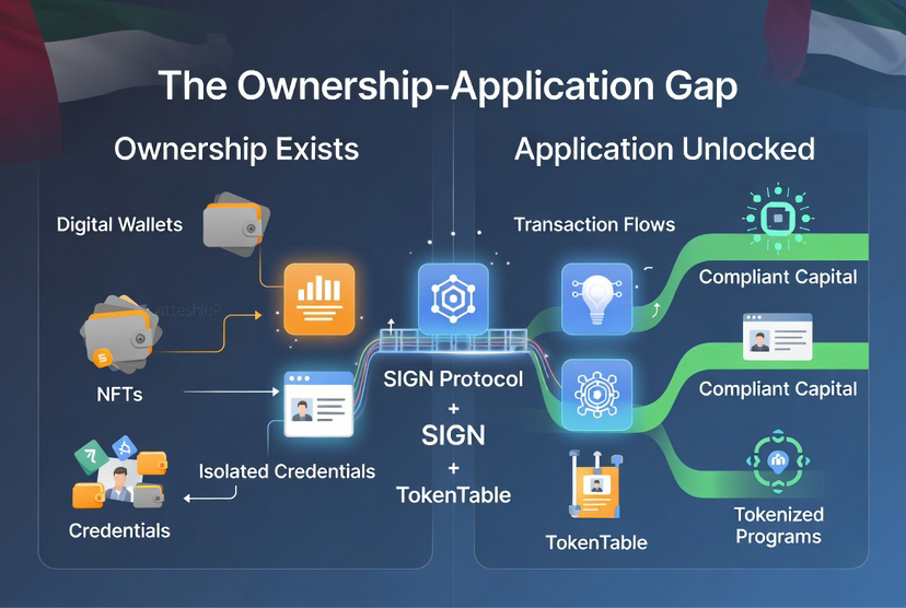 Sign Protocol addresses the ownership-application gap by providing tamper-proof attestations through an omni-chain evidence layer. This infrastructure enables verified claims, such as NFTs and self-sovereign identity proofs, to be transformed into executable, auditable actions across chains, facilitating seamless applications in areas like finance and government programs.