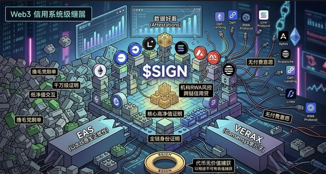 就在那一夜,他偶然接触到 Sign Protocol 的去中心化凭证网络——通过不可篡改的区块链 attestation,SIGN代币驱动的系统瞬间成为他的救赎。Khalid 利用 SIGN议,将石油合同、土地所有权和供应链数据转化为可验证的数字凭证。这些凭证跨越国界,在阿联酋、卡塔尔和埃及的主权基金间无缝流转,无需依赖任何单一中心化机构。制裁阴影下,传统金融如沙堡般脆弱,而 SIGN的正是“数字主权基础设施”——支持多链互操作、CBDC 集成与实物资产代币化,让中东国家在动荡中依然掌握数据主权与经济命脉。当下中东局势复杂:红海航道受阻、区域博弈加剧、能源转型与“一带一路”数字版交织,传统基建暴露出的脆弱性前所未有。