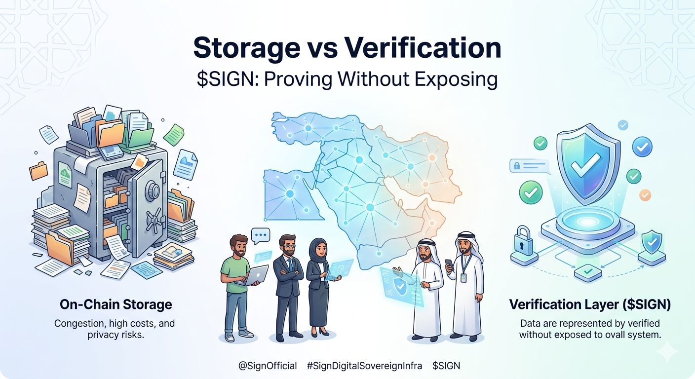 The reality is that storing raw data on a blockchain is expensive slow and often a privacy nightmare. In a region like the Middle East where financial and government systems are tightly regulated exposing sensitive information on a public ledger isn't just impractical it's a non starter.