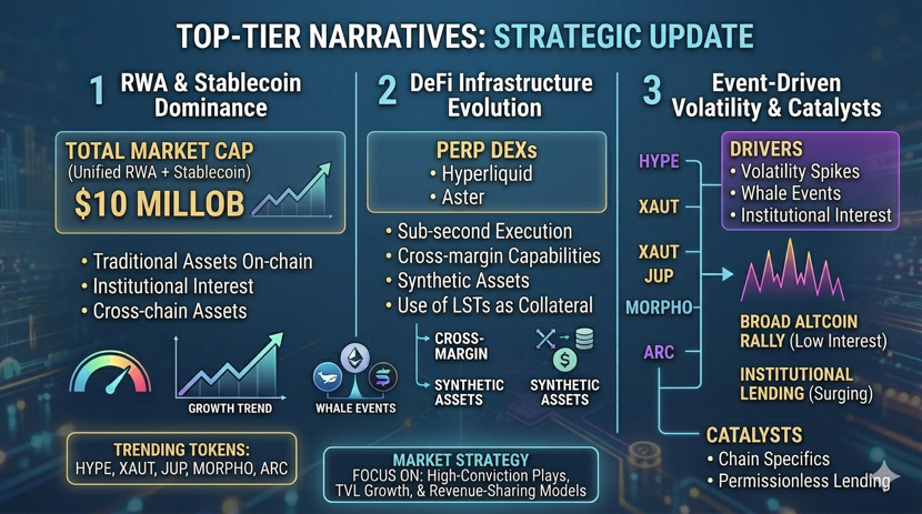 Market Strategy: Focus on high-conviction plays within these clusters. Avoid "beta" exposure; prioritize tokens with proven TVL growth and revenue-sharing models.