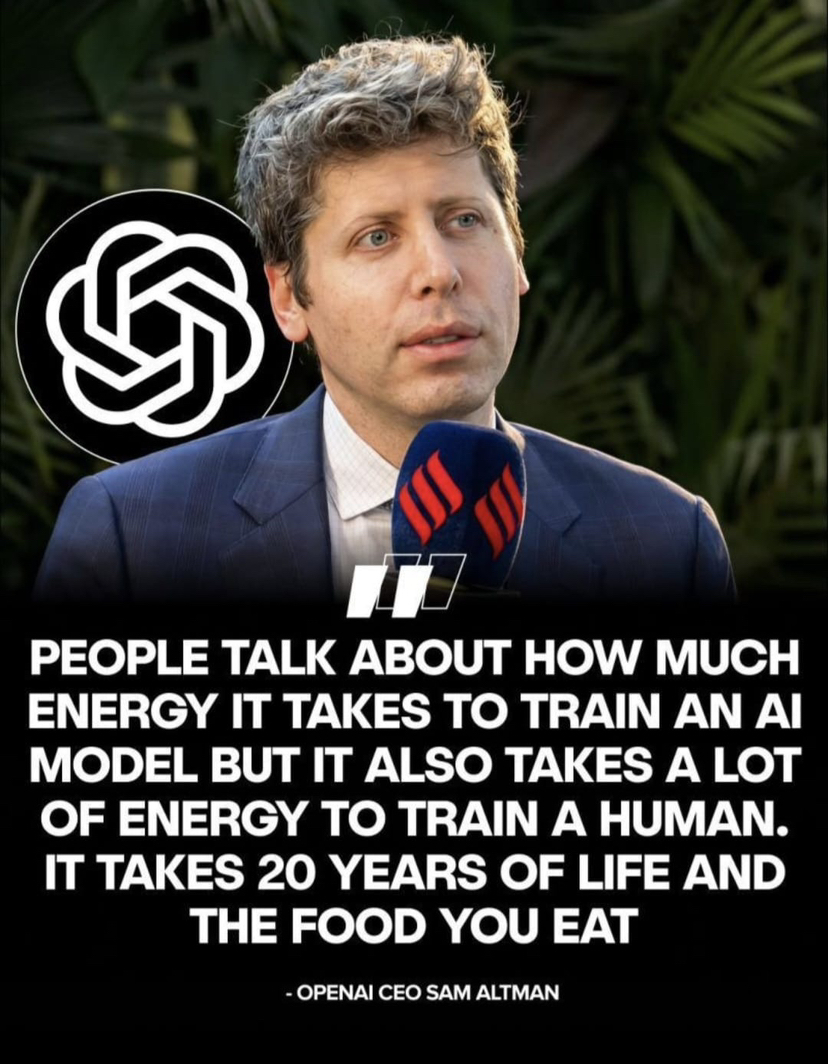 Sam Altman recently responded to criticism about ๐๐ ๐ฒ๐ป๐ฒ๐ฟ๐ด๐ ๐๐๐ฒ with an argument that made many people pause.