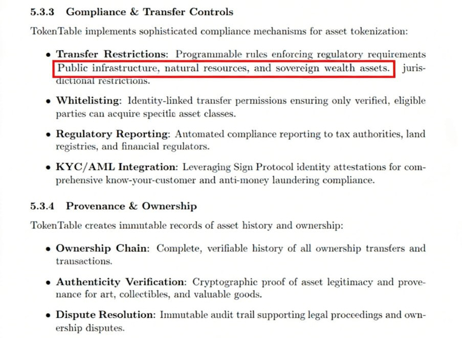 The white paper also mentions another point on page 26: Sovereign Wealth Assets can be anchored on-chain. Oil, gold, government bonds can all be converted into programmable digital certificates. Set rules: can only be used in specific areas, can only be issued to verified individuals, can only be unlocked in batches. No one can intercept in between.
