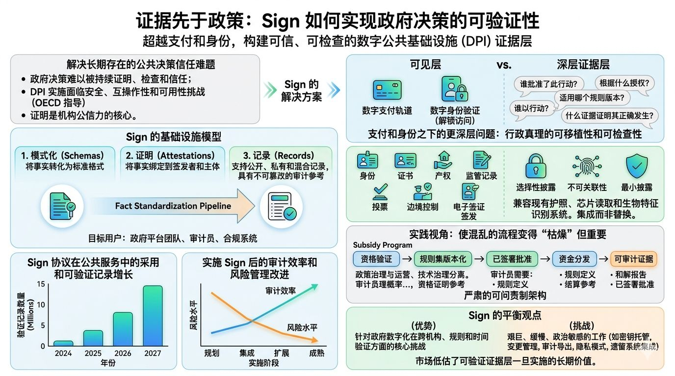 @SignOfficial I think the most important thing Sign is trying to solve is not digital payments, digital identity, or even blockchain adoption in the abstract. It is the older and more stubborn problem underneath all of them: whether a government decision can still be proven, inspected, and trusted after the moment has passed. That matters now because digital public infrastructure is moving from theory into implementation, and OECD guidance has emphasized that governments need shared digital systems that are secure, interoperable, and usable across public services. In that setting, “proof” stops being a technical extra and starts becoming part of institutional credibility.
