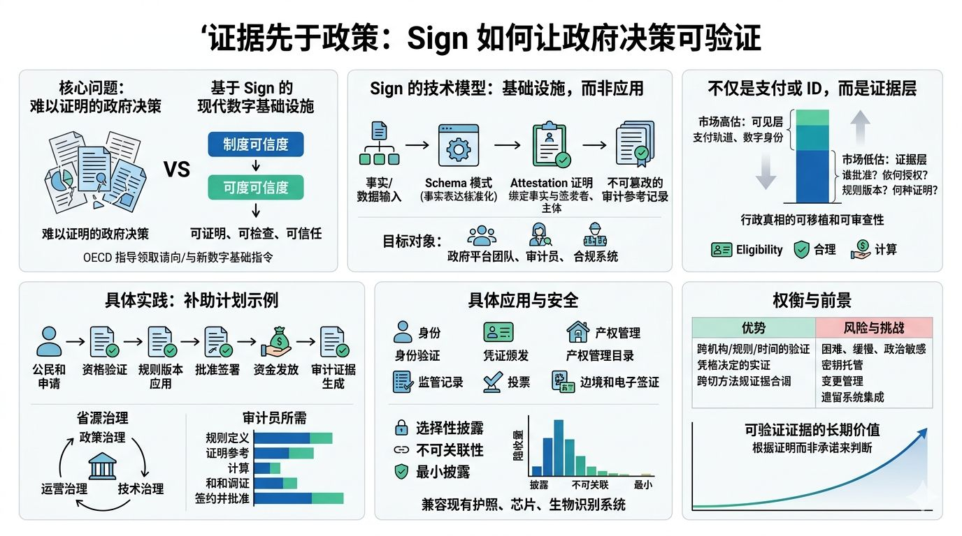 That framing matters because the market often overvalues the visible layer of government tech and undervalues the evidence layer underneath it. A payments rail can move money. A digital ID can unlock access. But the hard public-sector question is usually more mundane: who approved this action, under what authority, under which rule version, and what record proves it happened correctly? Sign’s broader documentation leans directly into that question. It describes the evidence layer as the place that answers who approved what, when it occurred, what ruleset version applied, and what proof supports eligibility, compliance, and settlement. To me, that is the real thesis here: Sign is trying to make administrative truth portable and inspectable.