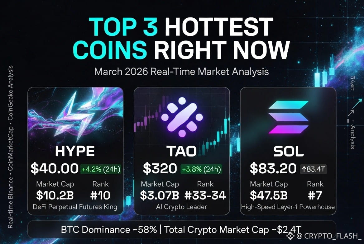 Hey Square Family! My dear followers, I’ve got a super fresh and engaging market analysis just for you on Binance Square. Right now, the entire crypto world is buzzing about these exact 3 coins – Hyperliquid (HYPE), Bittensor (TAO), and Solana (SOL). I’ve done real-time analysis from Binance, CoinMarketCap, and latest market data to bring you the most interesting + helpful news. Read it from start to finish – this could seriously level up your portfolio!