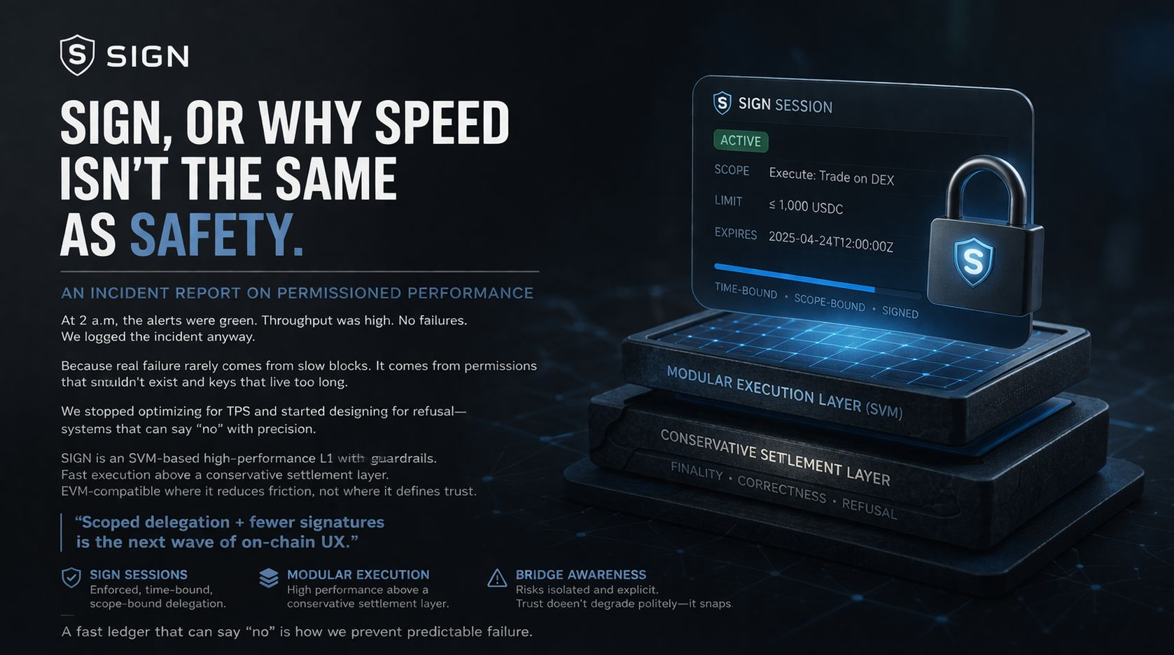 SIGN is not built to be the fastest system in isolation. It is built to ensure that speed does not outrun control. That execution does not outpace accountability. That permissions are granted with an expiration date already attached.
