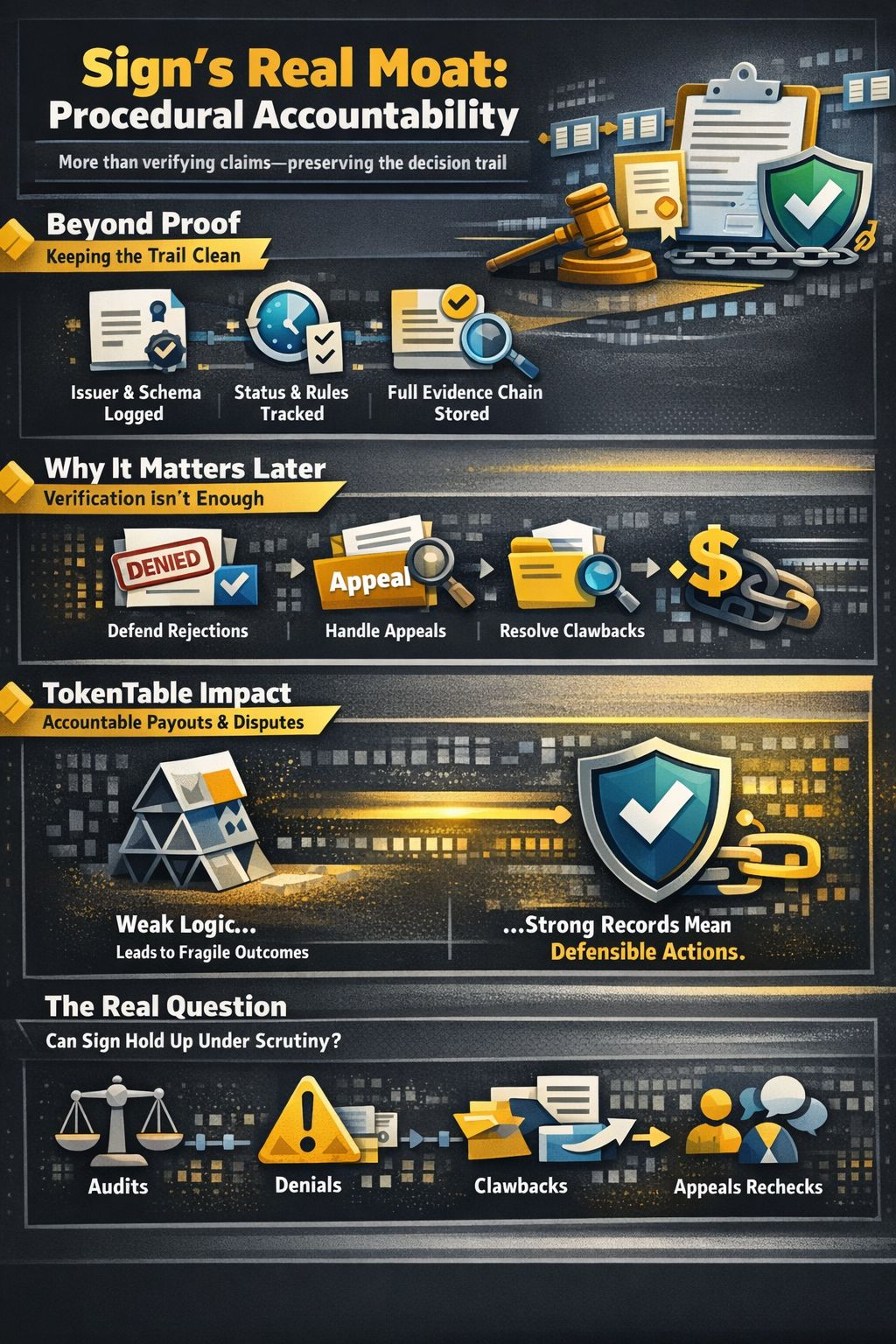 And it changes how I think about TokenTable too. The shallow read is that it helps distribute tokens more cleanly. Sure. The deeper read is that TokenTable is where accountable procedure meets capital. If the underlying logic is preserved well, then payouts, denials, reviews, and clawbacks become easier to defend. If that logic is weak, then the distribution layer becomes a fast way to turn fragile reasoning into irreversible consequences.