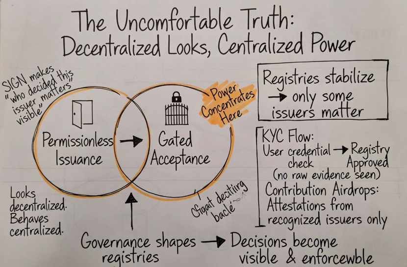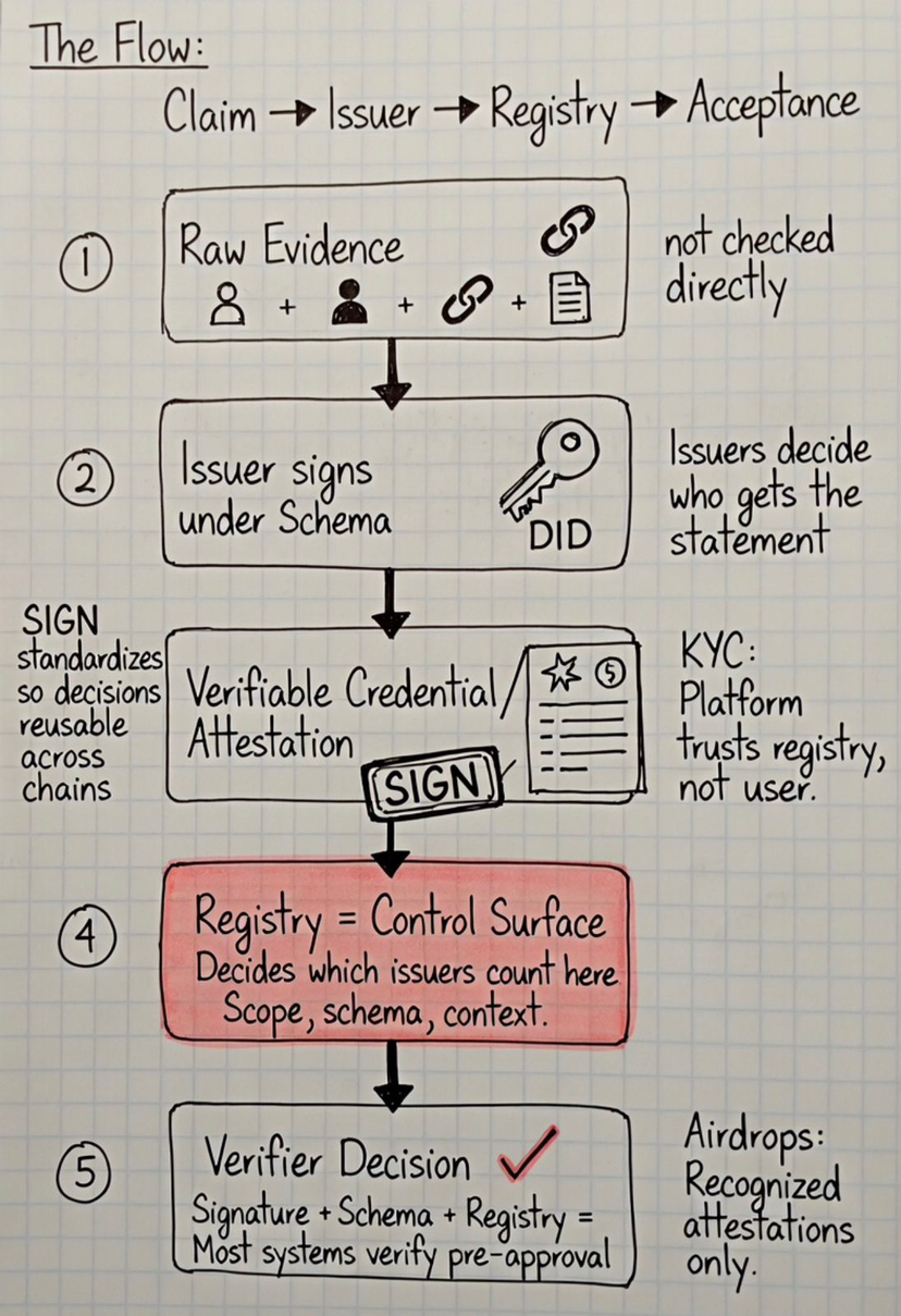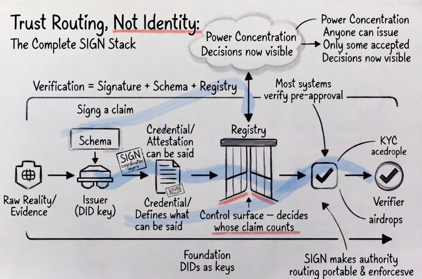 Take something like KYC. A user holds a credential that says they’re verified. The platform doesn’t inspect the user directly. It checks whether the issuer of that credential is part of its accepted registry. The decision is already shaped before the user even enters the system.