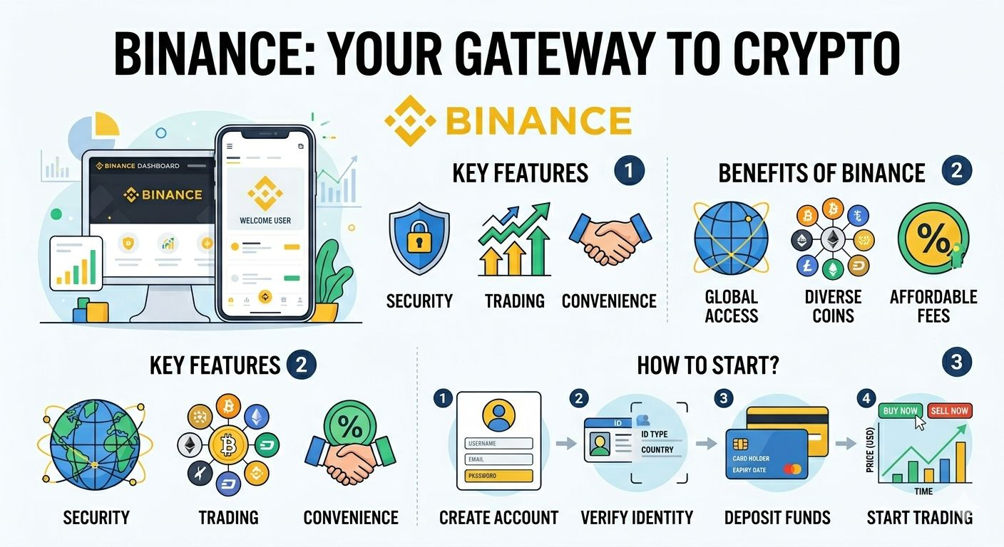 <img src="image_2.png" alt="Binance Info-graphic: Key Features and Getting Started Guide" width="100%" style="max-width: 800px; border-radius: 10px; box-shadow: 0 4px 8px rgba(0,0,0,0.1);">
