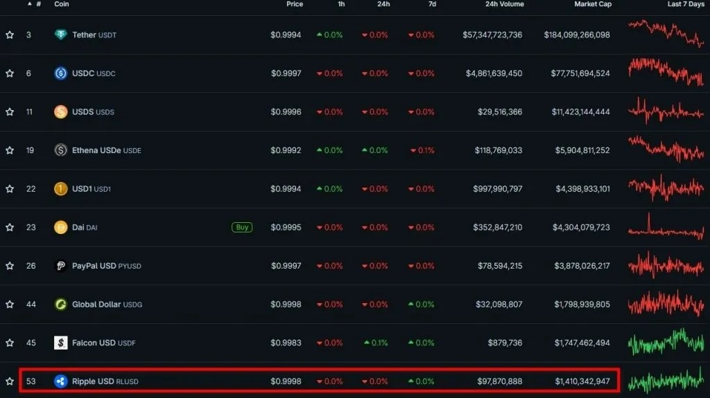 Компания также активно развивает собственное направление стейблкоинов. Запущенный в 2024 году RLUSD уже вошел в число крупнейших активов своего сегмента.