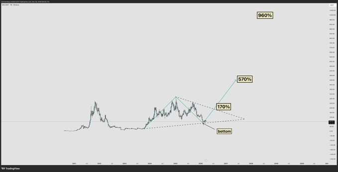 Incluso hay voces como la de Moonbag que sugieren que esta compresión de precio entre los 80 y los 200 dólares es como un resorte que se está apretando. Si logramos romper esa resistencia descendente, los objetivos de 400, 600 y hasta 1,000 dólares no son cuentos de hadas, sino proyecciones basadas en ciclos anteriores. La estructura sigue sana mientras no perdamos el soporte crítico de los 45 dólares; si caemos de ahí, entonces sí, a rezar se ha dicho. 🙏