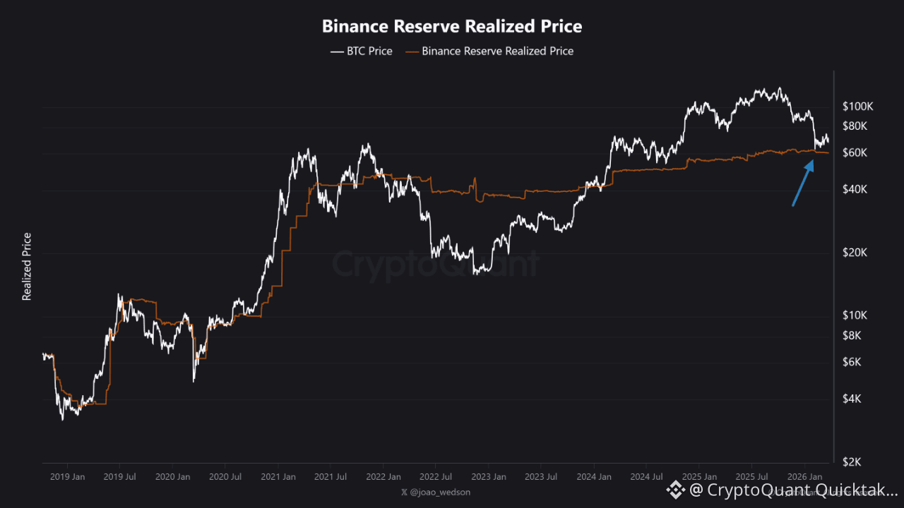 This level represents the average realized price of Binance's entire BTC reserve. Below it, the majority of holders within that reserve move into unrealized loss.