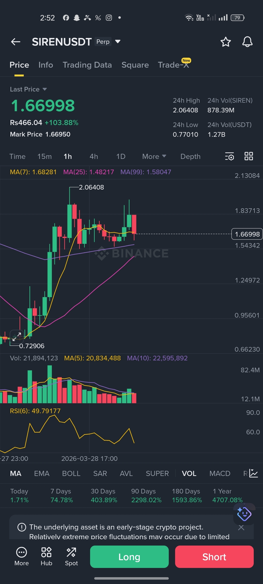 Outlook: SIREN is in a strong long-term uptrend, but short-term price is consolidating below MA(7). A breakout above 1.68 could trigger the next leg up.