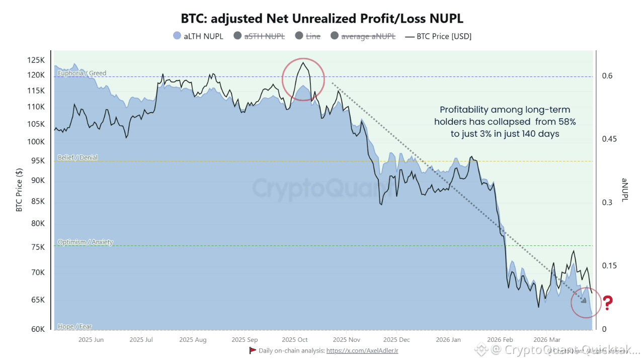 Until LTHs transition decisively into negative NUPL territory, the probability of a premature bottom remains elevated. The current environment resembles a late-stage stress phase rather than full capitulation.