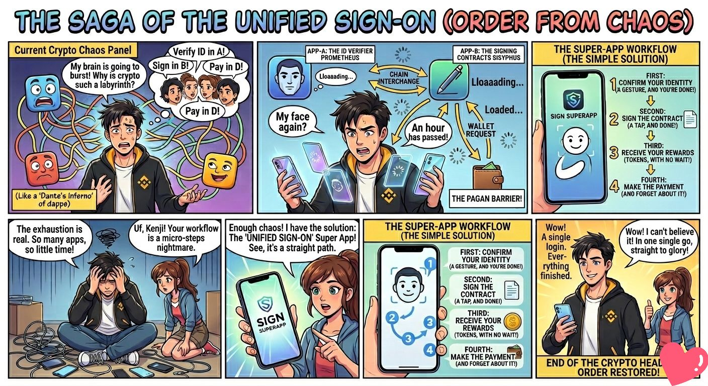 🫤 Every project claims they’re building a SuperApp. Most of them just mean “we crammed too many features into a dashboard and called it a day.” But here’s the thing: I want one place where I can prove who I am, sign something, claim tokens, and pay without hopping across platforms like I’m solving a logic puzzle designed by someone who hates me. Open once. Log in once. Done.