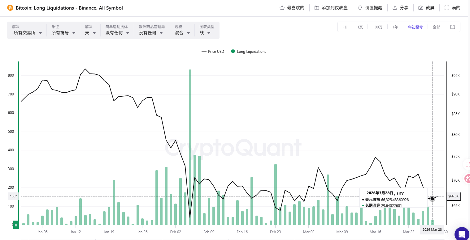 However, after mid-March, the liquidation pillars have noticeably shrunk. In the past two weeks, the daily long liquidation has basically remained in the low range of 30-100.