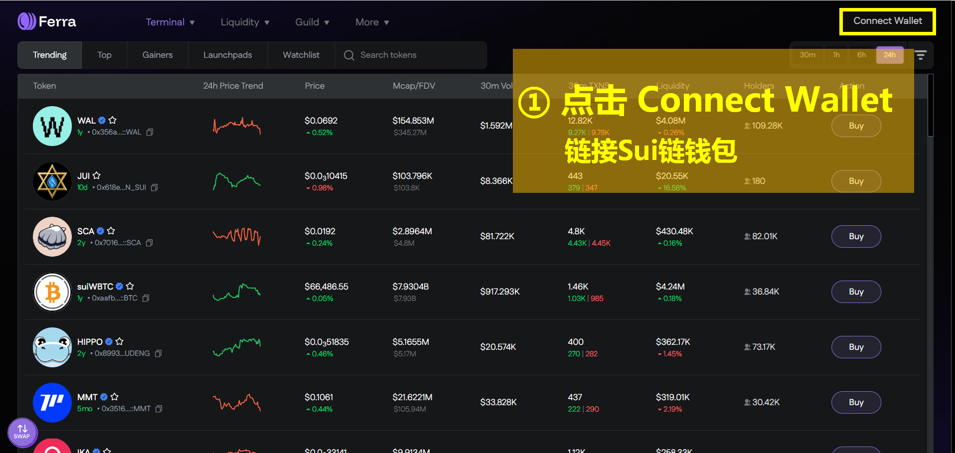 这应该都很熟悉,只是注意使用的是Sui链钱包。