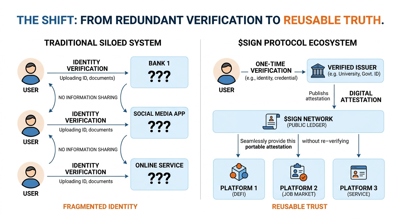 Not in a dramatic way, just small things. Signing up somewhere, verifying identity, uploading documents… waiting… repeating it all somewhere else like nothing carries forward.