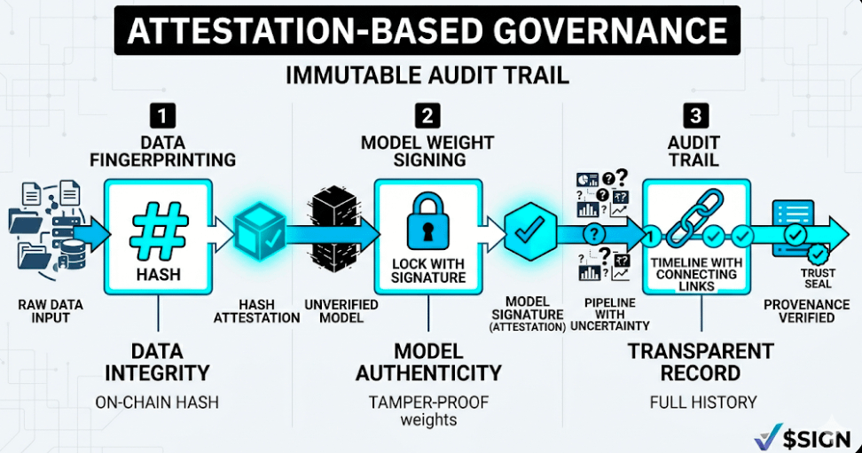 1. Data Fingerprinting: Datasets are hashed and recorded as $SIGN attestations.