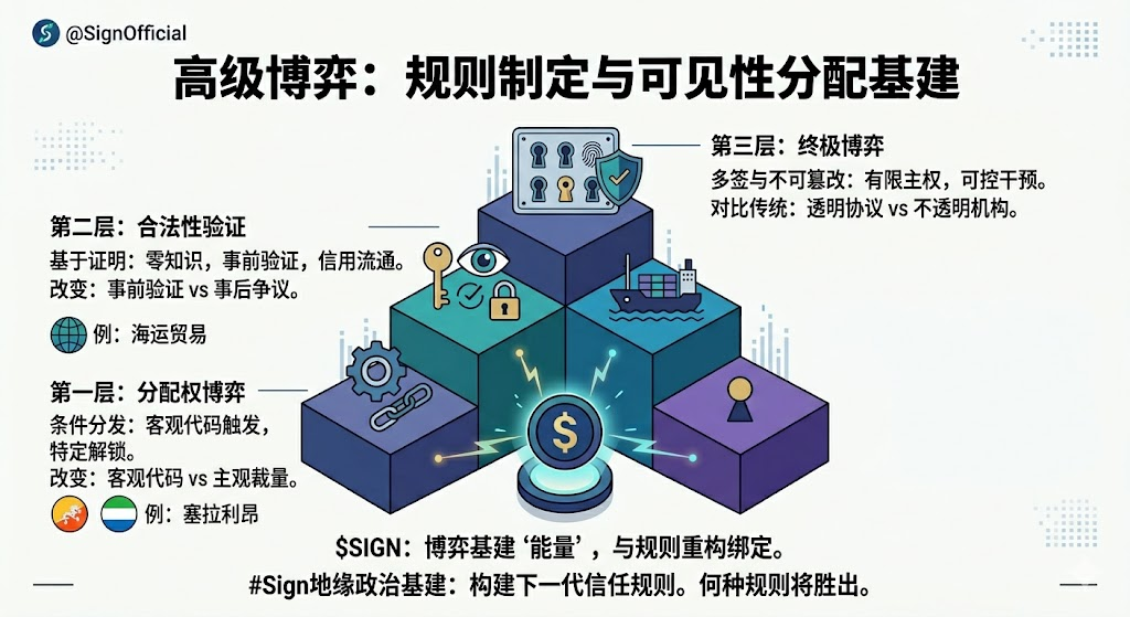 The third layer, and also the most fundamental game, is the right to interpret and veto ultimate rules. Any system needs to upgrade and respond to extreme situations, but who triggers changes and in what manner? Traditional companies have board decisions, which pose a risk of single-point malfeasance. The architecture of SIGN designs a clever balance through multi-signatures and immutable logic (Multi-sig & Immutable Logic). The upgrades or emergency operations of key contracts are controlled by multiple signatures, dispersing power; while the core business logic (such as distribution rules, proof verification algorithms) becomes immutable once deployed. This creates a game environment of limited sovereignty: participants are confident that the foundational rules will not be arbitrarily changed (certainty), while also believing that in extreme cases, a multi-signature group composed of trusted entities can intervene as necessary (flexibility). This design is precisely what sovereign nations value most when seeking digital autonomy: it prevents external single-point interventions while retaining necessary internal governance levers. Therefore, investment$SIGN logic extends far beyond simply betting on a tool token. It is betting on a profound paradigm shift: the game rules of the value internet are transitioning from reliance on opaque authoritative institutions to reliance on transparent, verifiable cryptographic protocols. $SIGN, as the 'energy unit' driving the generation, verification, and TokenTable conditional distribution of Sign Protocol proofs, is deeply tied to the process of this rule reconstruction. The more geopolitical conflicts highlight the fragility of traditional trust channels, the more rigid this code-based, auditable game infrastructure becomes. This is not about which country will win, but about which set of trust-establishing rules will prevail in the next era.#Sign地缘政治基建 is precisely what is being constructed.