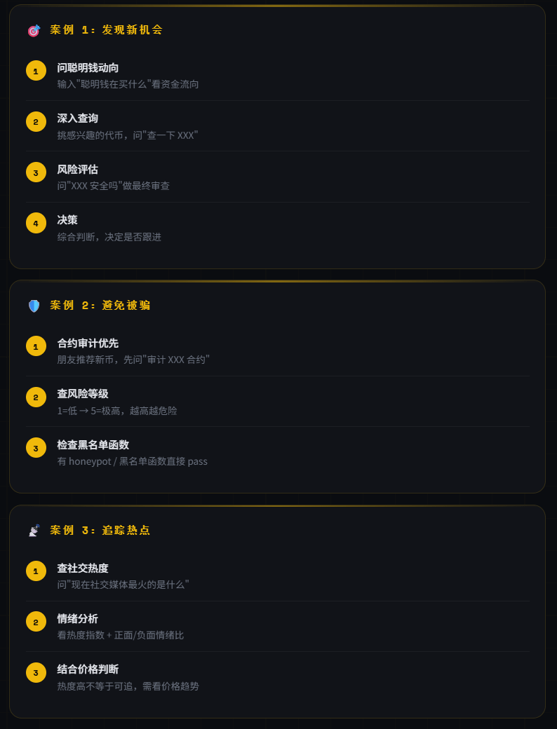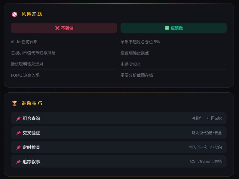 Before entering the market, run through this: hype ranking to see narrative direction, smart money to see funding preferences, safety audit for preliminary screening; after cross-referencing the three data points, decide whether to delve deeper.