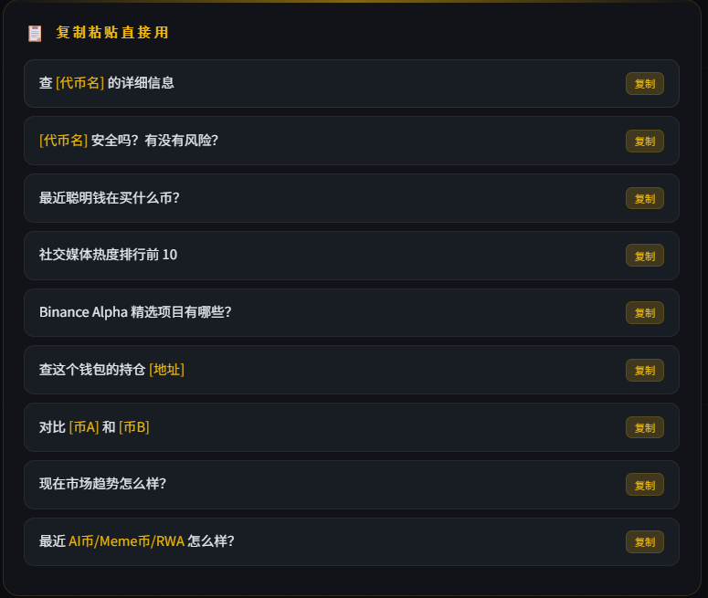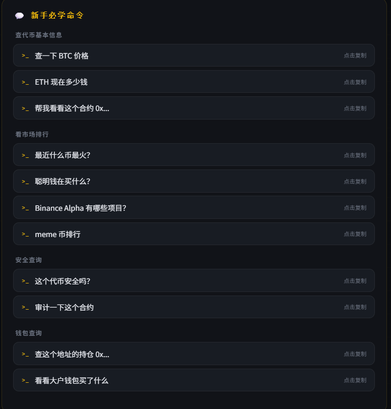 These directions, taken separately, are not new; there are a bunch of tools on the market each doing one part. The advantage of Binance AI is that it is integrated and the threshold for interactive dialogue is very low; beginners don’t need to learn any command formats, just ask directly.