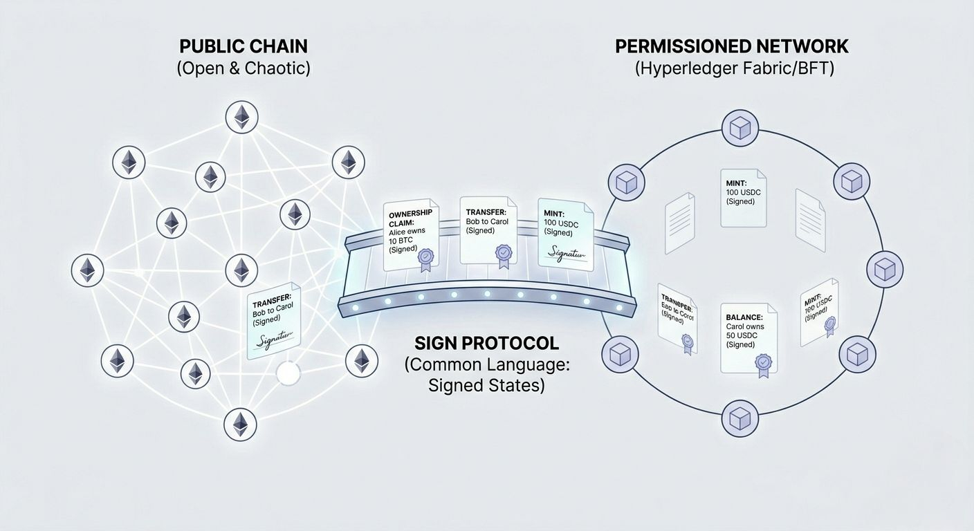 And what I really like and people don’t talk about this enough is that Sign Protocol becomes the common language across both sides. Public chain? Signed data. Private network? Signed data.