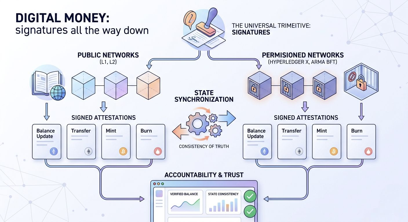 At the end of the day, money on-chain is just signed claims. That’s it. Who owns what. Who sent what.... What’s valid..... What isn’t..... Strip away the branding, the hype, the token logos it’s signatures all the way down.