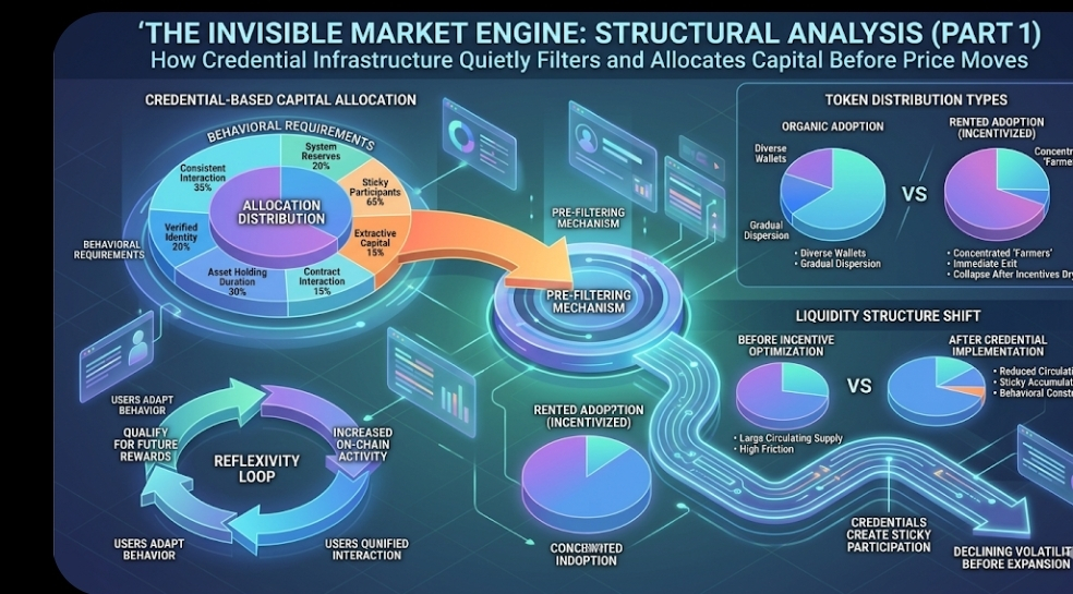 What most people miss is how this affects liquidity structure. When tokens are distributed based on credentials, they don’t immediately hit the market. They accumulate in wallets that are conditioned to wait. That reduces circulating supply in a very real waynot through lockups, but through behavior. And behavioral supply constraints are harder to model, which is why they create sharper moves when demand finally shows up. By the time the chart looks “strong,” most of the positioning is already done.