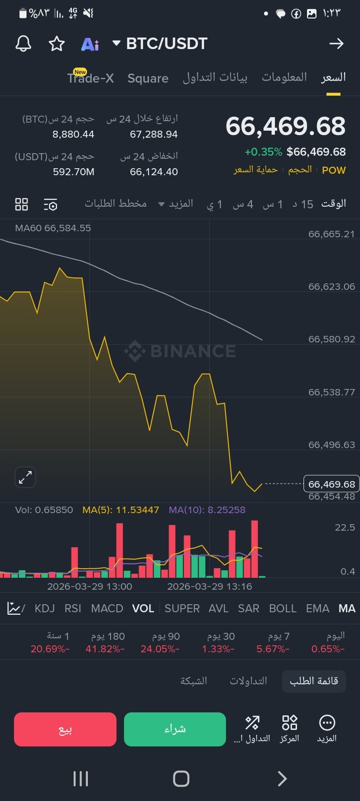 #Bitcoin الرسم البياني المرفق لعملة $BTC، نلاحظ تحرك السعر داخل قناة عرضية مهمة تتطلب الحذر الشديد من المتداولين. المبدأ الذهبي حالياً هو مراقبة مستويات الدعم عند مناطق الـ 65,000 دولار؛ فالثبات فوقها يعزز فرص الصعود نحو مستويات مقاومة جديدة. 📈الذكاء الاصطناعي في التداول (#AI) يشير إلى تزايد في زخم الشراء، لكن من الضروري دائماً استخدام أوامر وقف الخسارة لحماية المحفظة من التقلبات المفاجئة في سوق الكريبتو. ما هو رأيكم في حركة عملات $SOL و $BNB المرتبطة؟ هل نرى انعكاساً قريباً أم استمراراً للمسار الحالي؟ شاركونا تحليلاتكم! 👇#Write2Earn"