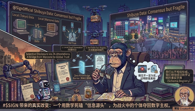 作为一个老开发者,我得吐槽一下现在泛滥的 AI 内容。现在中东前线的很多照片和视频,连专业的情报机构都分不清真假。Deepfake 技术已经让“眼见为实”变成了上个世纪的笑话。在这个背景下,$SIGN 做的其实是数字世界的“测谎仪”。它不是在告诉你什么是对的,它是在用数学证明这个信息在产生的那一刻,确实经过了某些特定物理节点或者特定身份的背书。这种对“信息源头”的死磕,比那些只会蹭热点的项目不知道高到哪里去了。