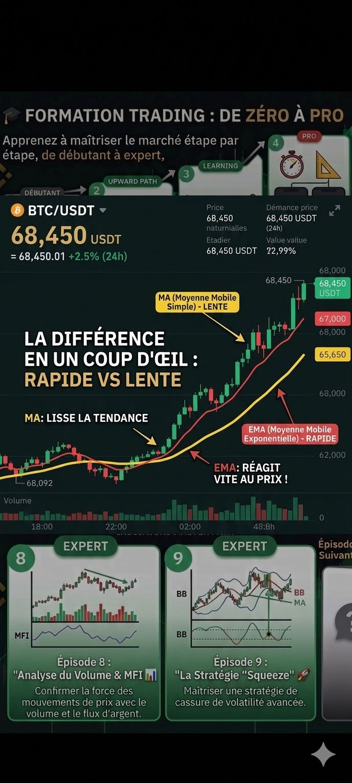 Why are they essential? Because in trading, "The Trend is your Friend". Moving averages are your best allies to never row against the current.