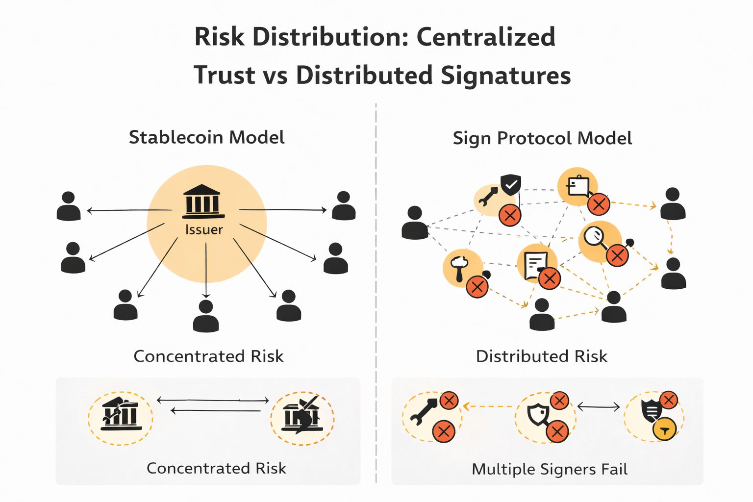 That momentum creates another effect. It moves trust from institutions to processes. Today, if Tether or Circle fails, the system shakes. With signed claims, the risk distributes across whoever is signing and verifying. That doesn’t remove risk. It changes its shape.