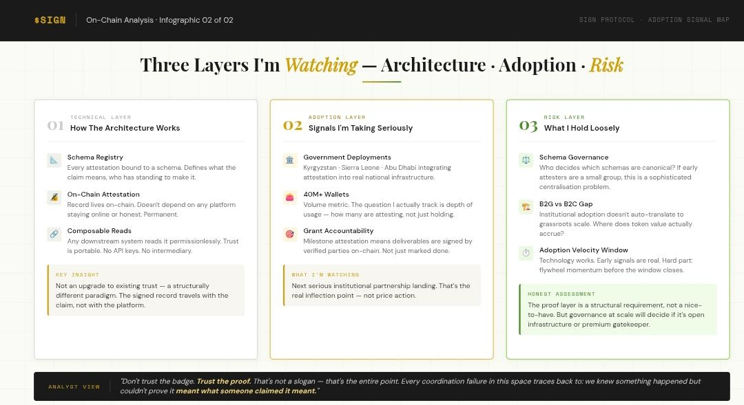 Here's where I actually land on this. The proof layer Sign is describing portable, verifiable, schema-defined attestations that travel with the claim and not with the platform is genuinely the missing piece. Not a nice-to-have. Not an improvement. A structural requirement for any on-chain economy that wants to operate at real-world scale. Every coordination failure I've watched in this space traces back, eventually, to the same problem: we knew something happened but couldn't prove it meant what someone claimed it meant. That's the gap. Sign is one of the very few teams I see actually building into it rather than around it.
