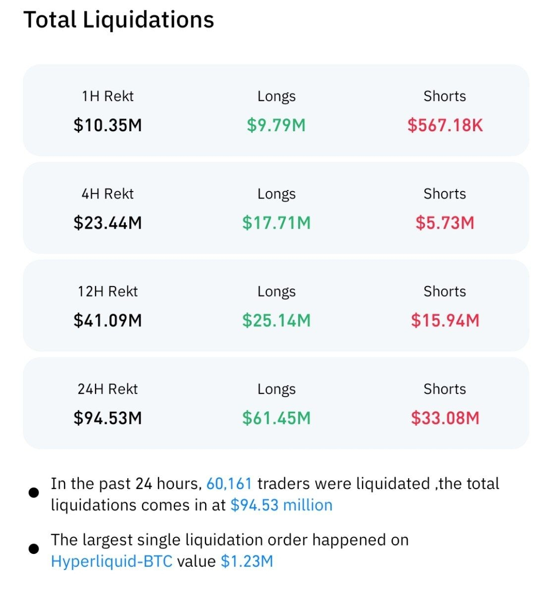 We witnessed a wave of violent liquidations in the last 24 hours that wiped out $94.53 million from the market. Here are the details and what these numbers mean: