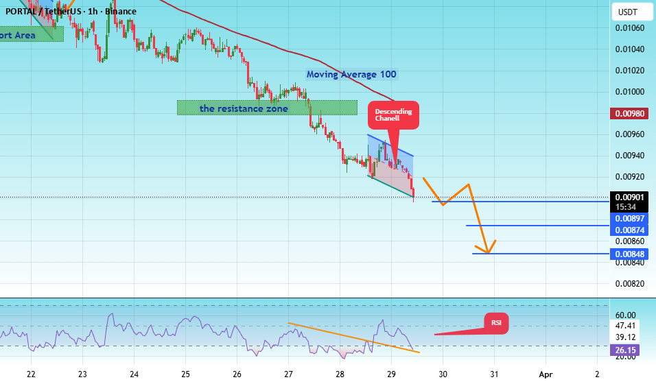 #PORTAL The price is moving within an ascending channel on the hourly time frame. It has reached the minimum and is heading towards a breakout. A retest of this level is expected.