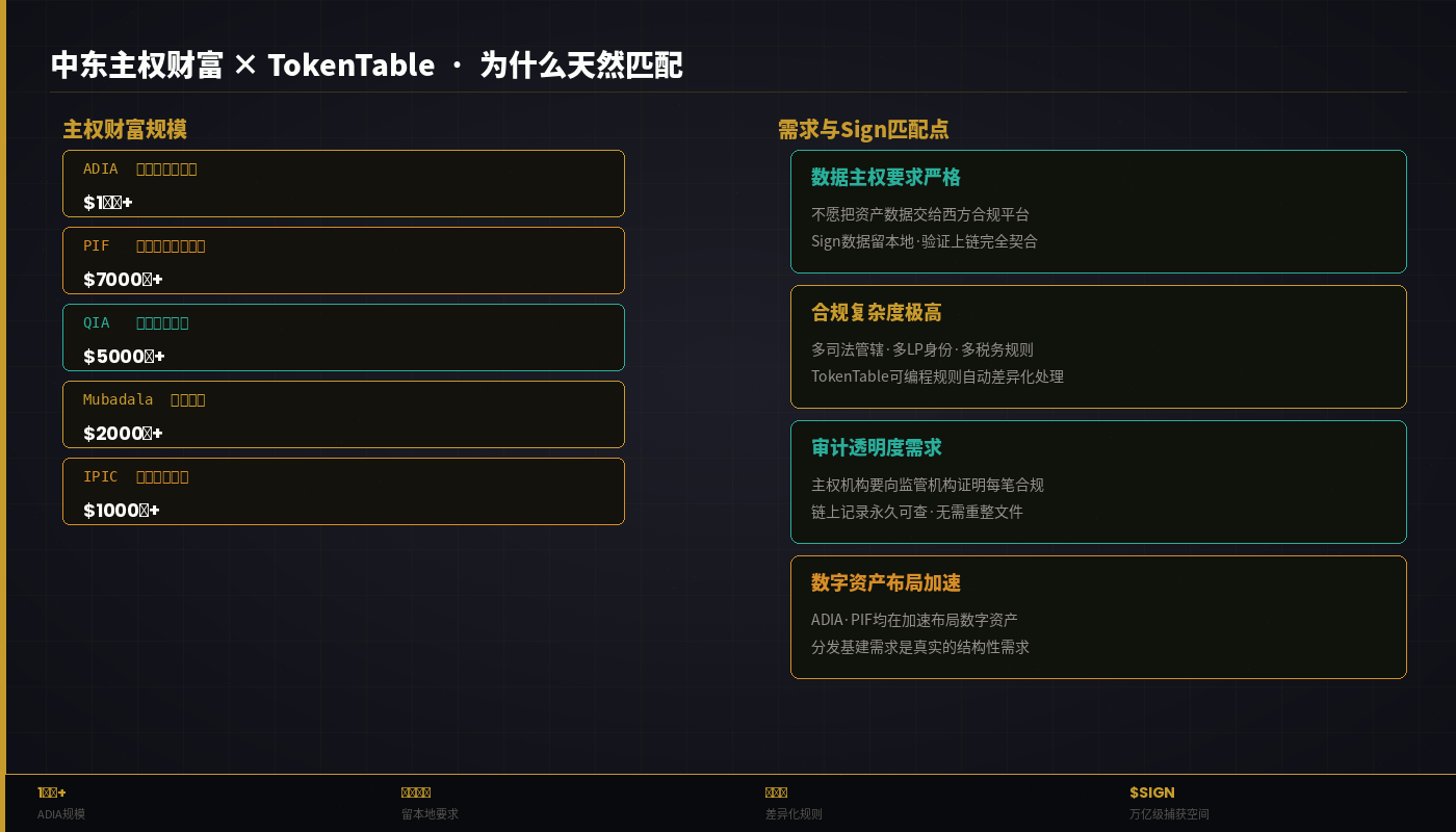 如果@SignOfficial的TokenTable能把中东主权财富基金的资产分发流程标准化——LP身份Attestation在链上、分配规则智能合约执行、每笔记录链上可查——这个工具在中东机构市场的价值不是锦上添花,是真实需要填的那个坑。