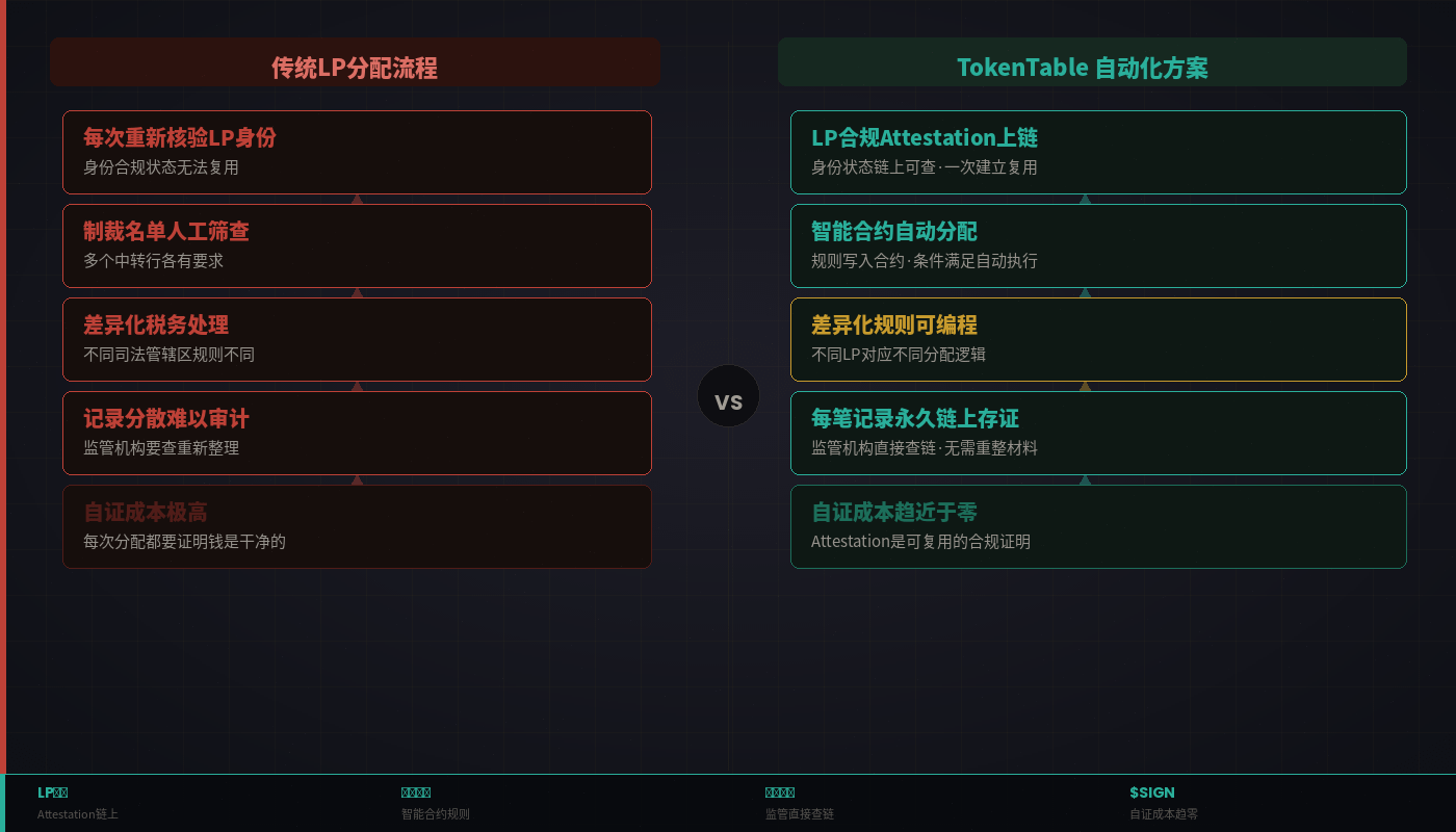 如果TokenTable能把"LP合规状态链上可查、分配规则智能合约执行、每笔记录永久存证"这三件事变成标准操作,下次他的基金做退出分配,起点就完全不一样了。