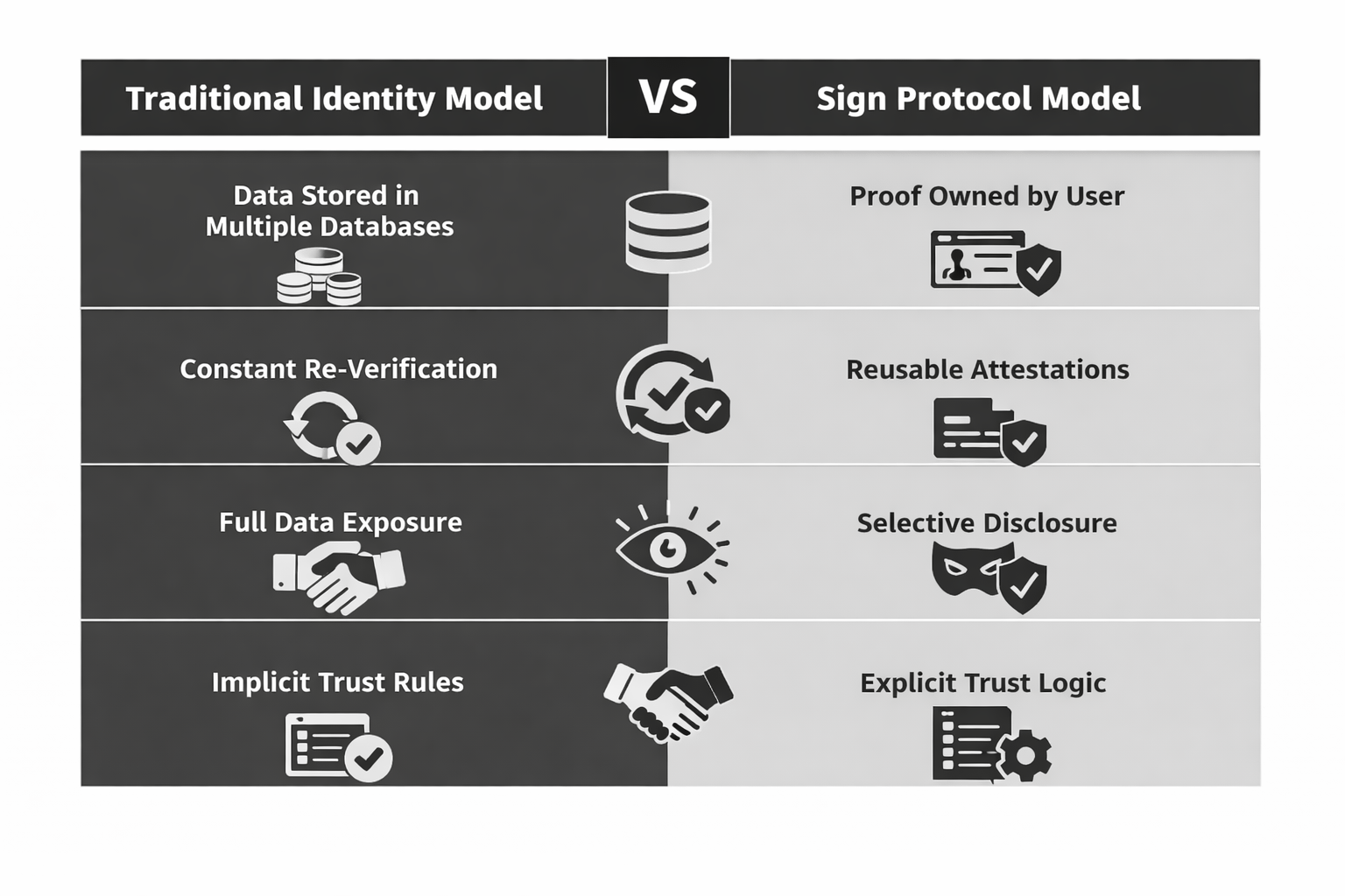 Most people never question identity systems because they feel smooth on the surface. You upload your documents, get verified, and move on. It feels normal, almost invisible. But if you slow down and really think about it, something feels off. Why do you have to prove the same thing again and again across different platforms? Why does every system need its own copy of your data? And more importantly, once you submit that data, who actually controls it? That’s the part most people don’t stop to consider. Identity today isn’t just about verification. It’s about duplication, exposure, and a quiet transfer of control that happens every time you click “submit. The way modern systems are built follows a predictable pattern. You provide your information, the platform stores it, and then it verifies it through some authority. This process repeats everywhere, from financial apps to government services to simple online registrations. At first glance, it looks efficient, but underneath, it creates a structure where your identity is constantly being copied and stored across multiple databases. Each copy becomes a new risk, and each system holding your data becomes another point of potential failure. That’s why data breaches keep happening at scale. It’s not just a security problem. It’s a design problem. Identity is not failing because it’s hard to verify. It’s failing because it’s being handled in a way that multiplies exposure over time. This is where Sign Protocol begins to change the conversation in a meaningful way. Instead of focusing on storing identity, it focuses on proving identity without repeatedly exposing it. At the center of this approach are attestations, which are essentially verifiable, cryptographic proofs about you. These proofs are issued once by a trusted entity and can then be reused across different platforms without requiring you to resubmit your raw data every time. That changes the flow completely. Instead of sending your information again and again, you present a proof, and the system verifies that proof. It’s a subtle shift, but it restructures how identity moves across systems. What makes this powerful is that it flips the traditional model. In most systems today, platforms own your data. With Sign Protocol, you own the proof of your identity. That distinction matters more than it seems. When platforms store your data, they control access, usage, and retention. When you hold the proof, you control how and when it is used. Systems no longer need to collect everything. They only need to verify what is relevant. This reduces friction, but more importantly, it reduces unnecessary risk. Identity stops being something that is scattered everywhere and starts becoming something that is selectively shared. Another important layer is how trust itself is handled. In traditional systems, trust is often informal and assumed. A document is accepted because it looks valid, or an institution is trusted because it always has been. These assumptions are rarely visible, and they are even harder to audit. Sign Protocol changes that by making trust explicit and programmable. Every attestation clearly defines who issued it, what it represents, and who is allowed to verify it. This turns trust into something structured instead of something implied. It becomes transparent, trackable, and verifiable without relying on hidden relationships or outdated assumptions. This also changes how privacy is experienced. Most systems claim to protect privacy, but still require users to share more data than necessary. Over time, that data accumulates across different services, often without the user fully realizing where it ends up. Sign Protocol introduces a different approach by allowing selective disclosure. Instead of revealing everything, you only share what is required for a specific interaction. You can prove eligibility without exposing full identity, confirm compliance without sharing full documents, and verify status without unnecessary detail. Privacy stops being a promise written in policies and becomes something you actively feel in how the system works. As this model scales, the impact becomes even more significant. Identity begins to move from being isolated within individual platforms to becoming a shared layer across multiple systems. A credential issued in one environment can be used in another. A proof created for compliance can unlock access to financial services. The boundaries between systems start to blur, and identity becomes more portable without becoming more exposed. This is where Sign Protocol shifts from being just a tool to becoming infrastructure. It creates a foundation where identity, verification, and trust can operate seamlessly across different parts of the digital world. What’s important to understand is that this shift is not just technical. It’s structural. It changes how authority is distributed, how data flows, and how control is maintained. The more systems adopt this model, the more identity stops being something fragmented and starts becoming something unified. And once identity becomes part of shared infrastructure, it becomes much harder to replace or redesign later. That’s why these early decisions matter so much. In the end, the future of identity is not about proving more. It’s about proving smarter, with less exposure and more control. Sign Protocol is pushing in that direction by separating proof from storage, trust from assumption, and identity from centralized ownership. Because the real question is no longer whether you can prove who you are. The real question is whether you control how that proof is used, where it travels, and who gets to rely on it. Right now, most people don’t. But that’s exactly what is starting to change.