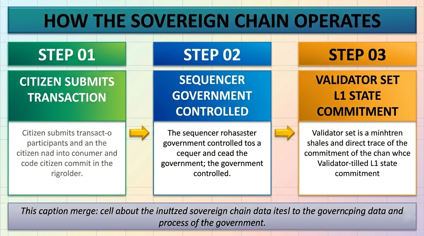 Under normal conditions the flow is clean. A citizen submits a transaction. That transaction goes directly to the government controlled sequencer. The sequencer orders and batches every single transaction on the chain before anything reaches the validator set for Layer 1 state commitment. Nothing bypasses it. Nothing skips it. The sequencer touches every transaction.